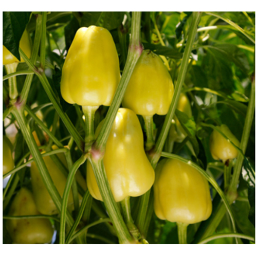 「浜ニュークリーム」は、バニラアイスのような優しいクリーム色(乳白色)が特徴の非常に珍しいピーマンです。横浜の種苗会社によって開発された「浜シリーズ」の一つで、浜クロピーの兄弟分のような存在。 一般的なピーマンに含まれる葉緑素が少ないためこの色になりますが、さらに熟成が進むと薄いオレンジ色から鮮やかな赤色へと変化していきます。その上品な見た目から、高級レストランの彩り野菜や、食卓に驚きを与える特別な野菜として人気を博しています。